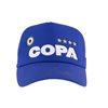 Casquette bleue de la marque COPA Football. Sur le devant, le nom de la marque, COPA se trouve et en haut du nom, 4 étoiles se trouvent. Le badge de la Coupe d'Italie également sur le devant. Le côté contient le nom COPA. La casquette est une casquette classique américaine. La casquette a une visière courbée, qui assure le confort. Casquette cool et sportive de la marque COPA, c'est une casquette idéale pour protéger conte le soleil.