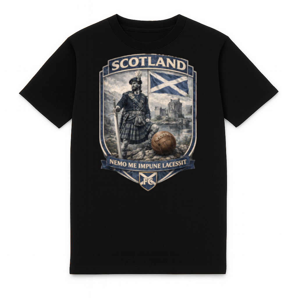T-shirt heavy Scotland élégant de FC ELEVEN pour adultes. Ce t-shirt heavy est fabriqué en coton biologique épais et offre une sensation robuste et confortable. Le dos du t-shirt présente une impression remarquable d’un bouclier avec une image 3D d’un Écossais dans les Highlands écossais. L’impression est réalisée dans les couleurs nationales de l’Écosse, bleu et blanc, et contient le texte Nemo Me Impune Lacessit. Spécialement conçu pour soutenir l’équipe nationale d’Écosse.