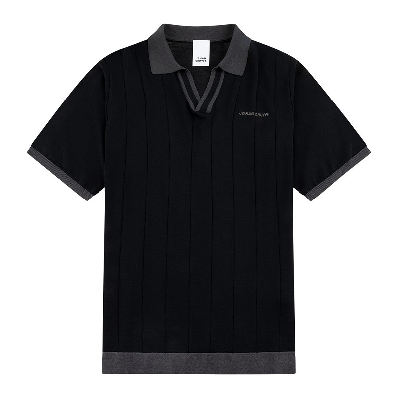 Ce polo sport rétro Johan Cruyff noir est un choix élégant et intemporel pour les amateurs de mode sportive. Il dispose d’une coupe normale confortable, d’un col côtelé noir et d’un col en V noir et blanc. Le logo brodé sur la poitrine gauche souligne sa qualité premium.