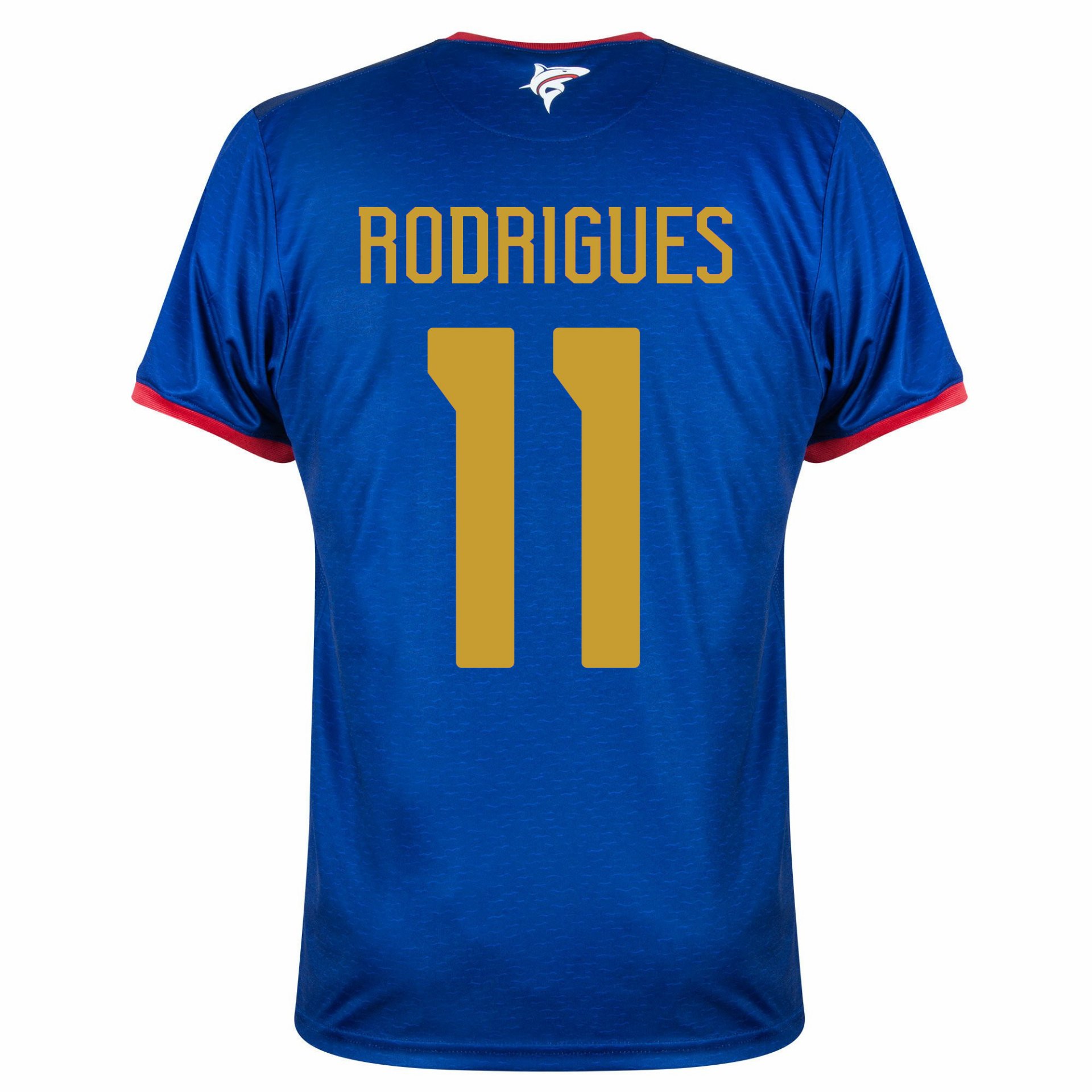 Voici le maillot domicile officiel du Cap-Vert 2024/25 pour adultes de la marque Tempo Sport. Ce maillot comporte le flocage officiel de Rodrigues (11). L’équipe nationale du Cap-Vert portera ce maillot lors des matchs internationaux pendant la période 2024-2025. Le design est entièrement inspiré des couleurs du drapeau national. Le maillot est bleu avec un imprimé intégral représentant les îles et la position du pays dans l’océan Atlantique Nord. Les coordonnées géographiques du pays sont également intégrées au design. Le col rond est rouge, tout comme la bande située en bas des manches. Le logo de l’équipementier Tempo est visible sur la poitrine droite, tandis que l’écusson de la fédération cap-verdienne figure sur la poitrine gauche. Dans la nuque à l’arrière, une illustration de requin fait référence au surnom de l’équipe nationale : Tubarões Azuis (Requins Bleus). Le maillot a une coupe standard.